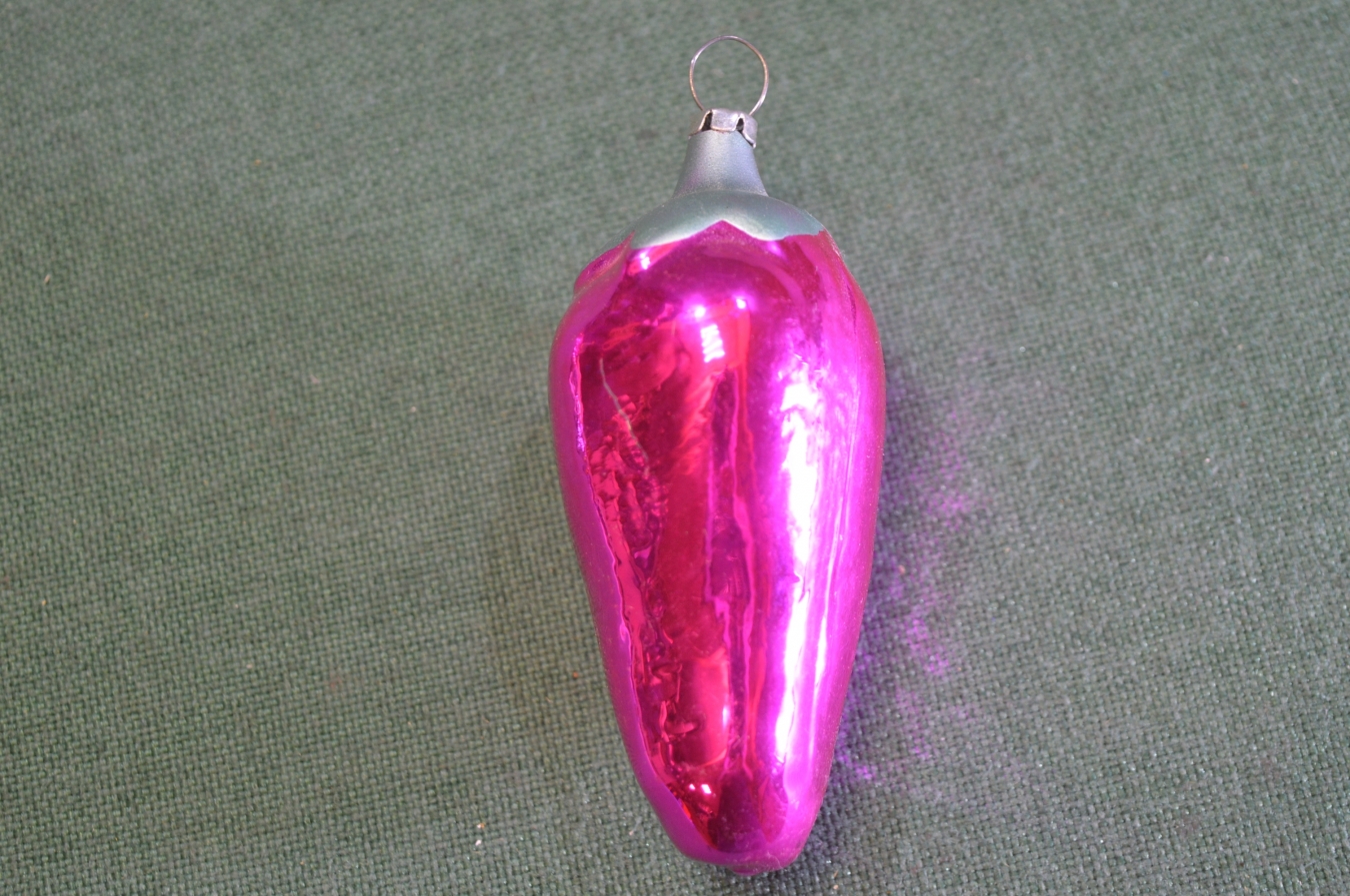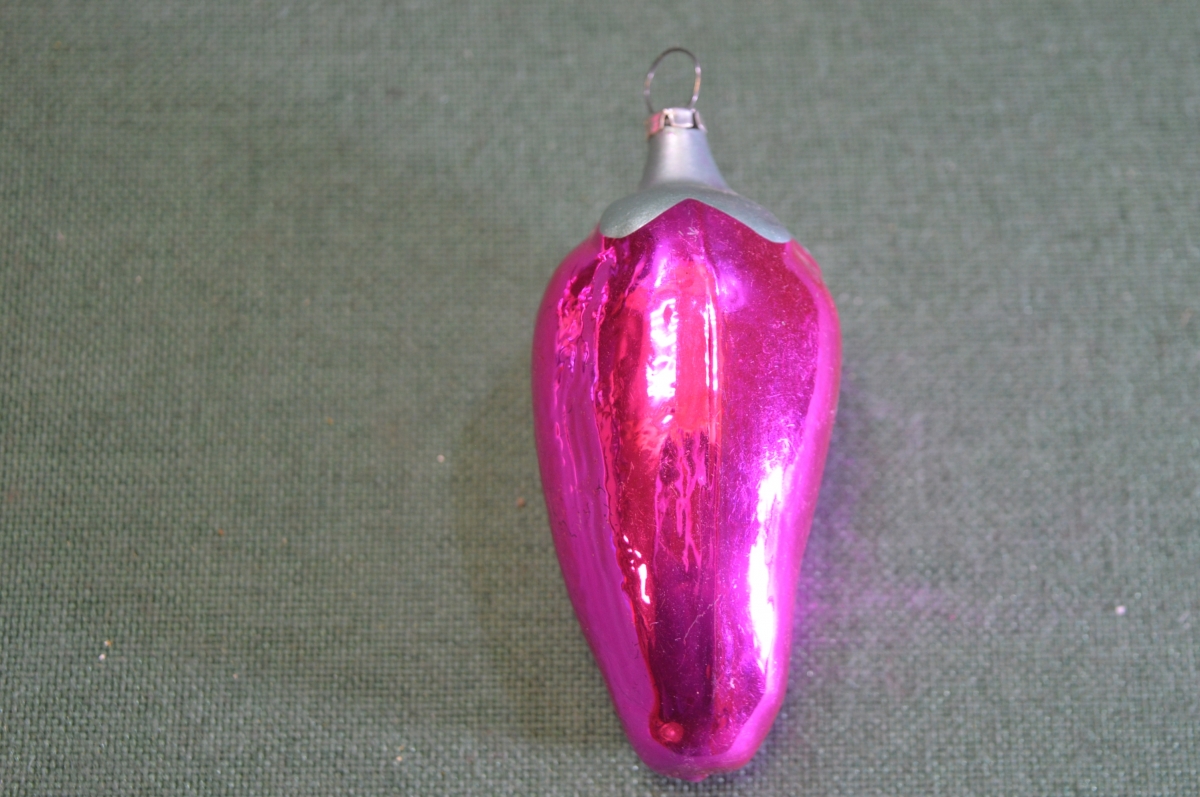 Игрушка елочная новогодняя "Баклажан". Стекло. СССР.