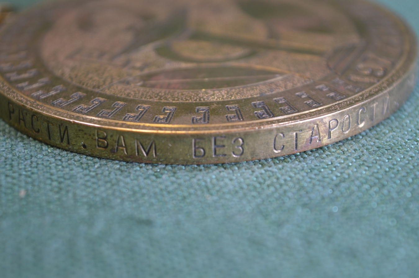 Диаметр 8 см. Вес 235 гр. Надпись на гурте "Лет до ста расти вам без старости, год от года цвести вашей молодости".