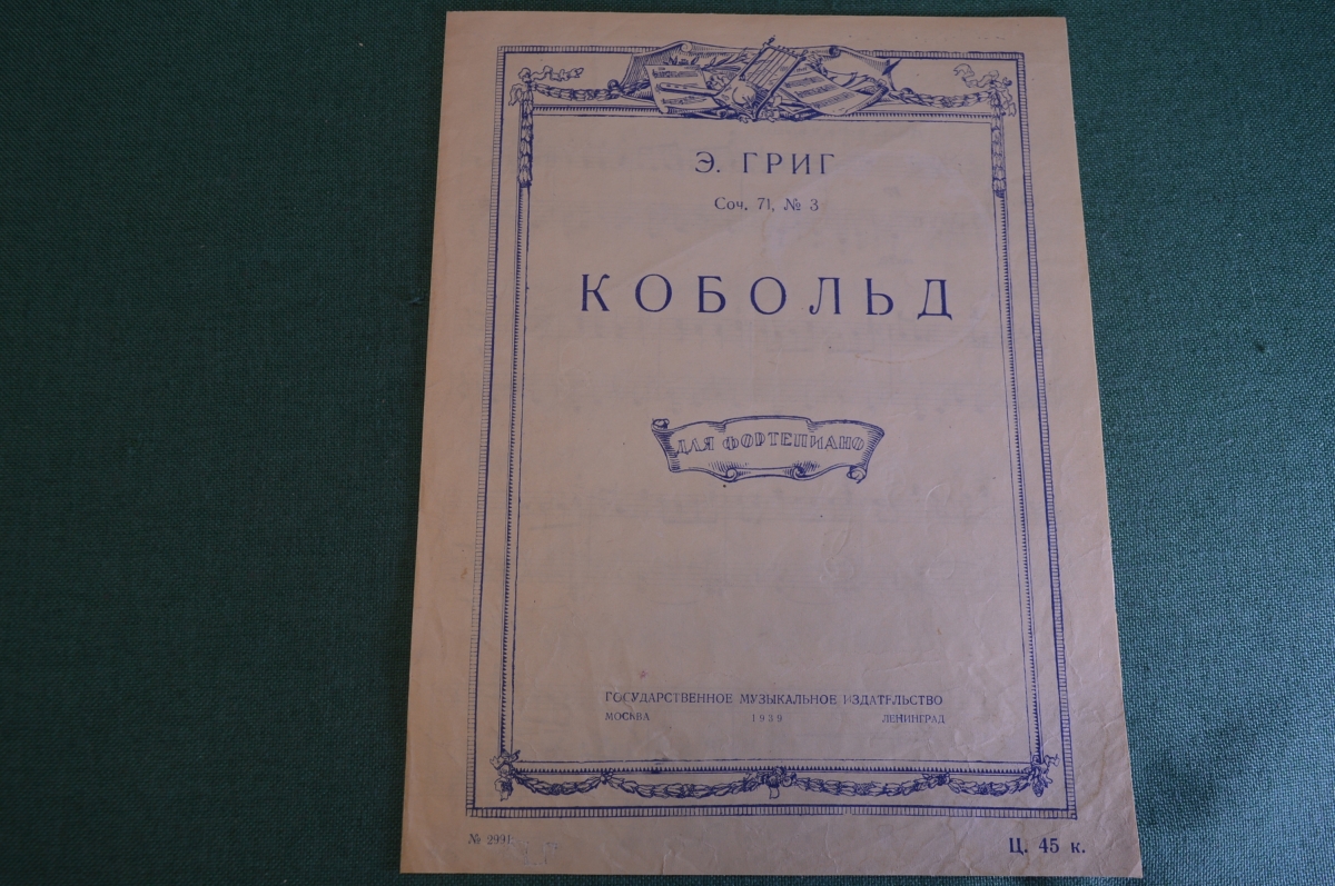 Ноты, партитура "Кобольд, Э. Григ". МузГиз, 1939 год. #K21