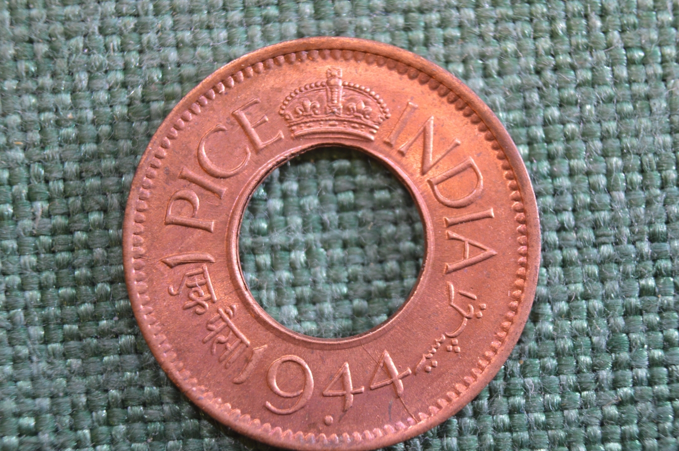 Монета 1 пайс, пайса, pice 1944 года. Индия, India.