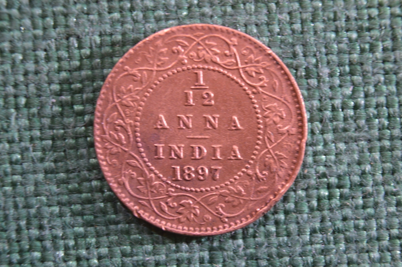 Монета 1/12 анны, anna 1897 года. Индия, India. Виктория.