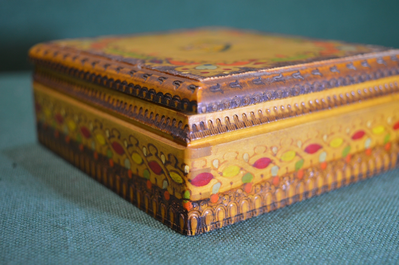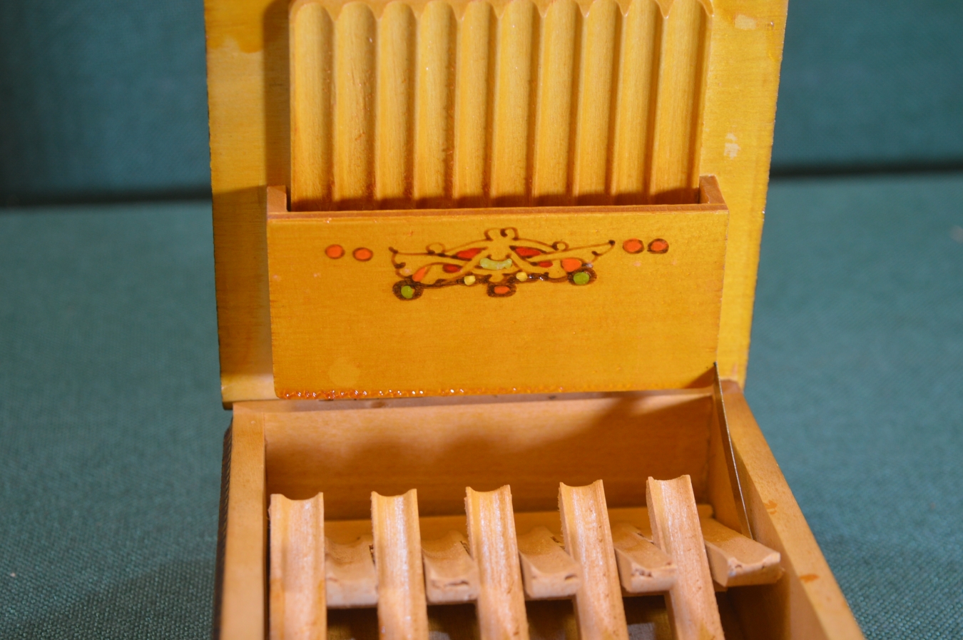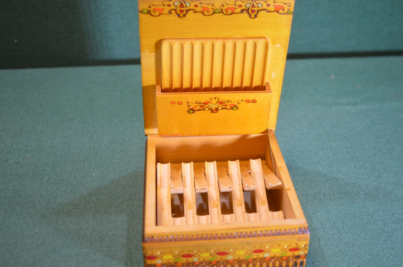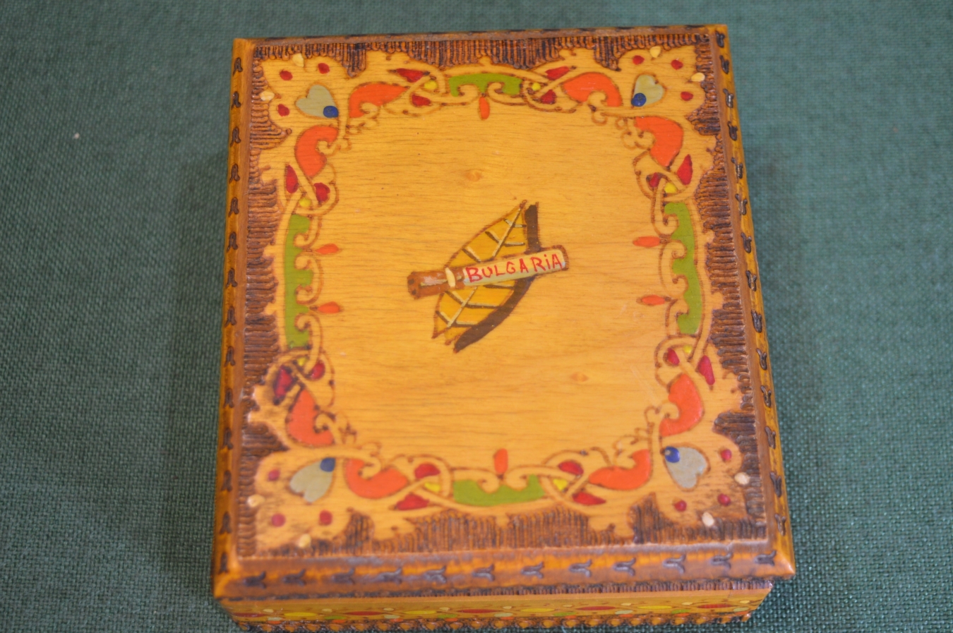 Шкатулка сигаретница папиросница. Дерево, лак, роспись. Болгария. 1960е.