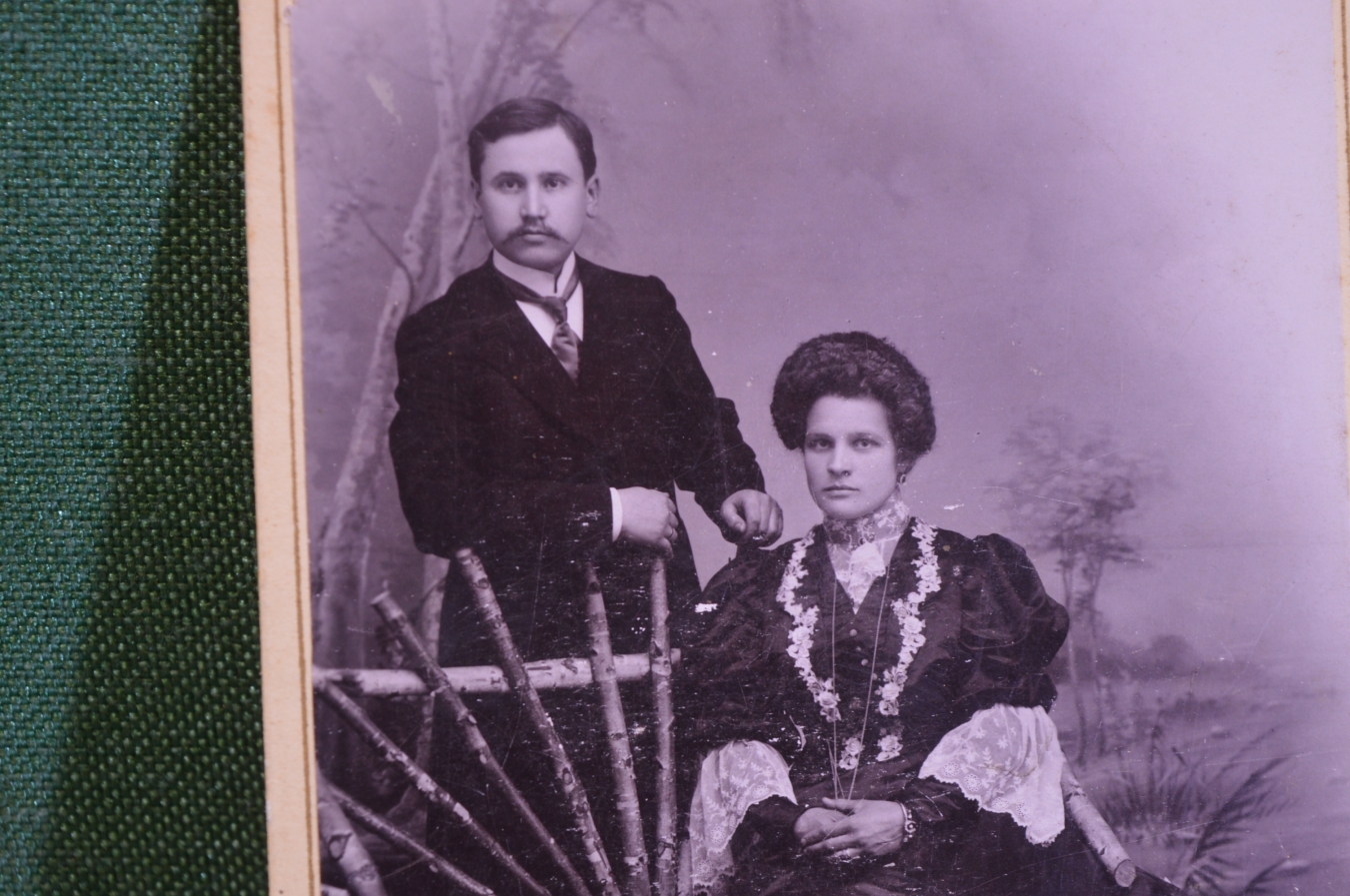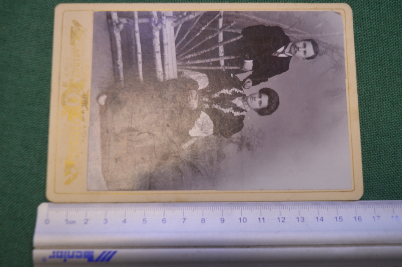 Фотография визитка старинная. Семейная пара. Царская Россия. 1908 год.