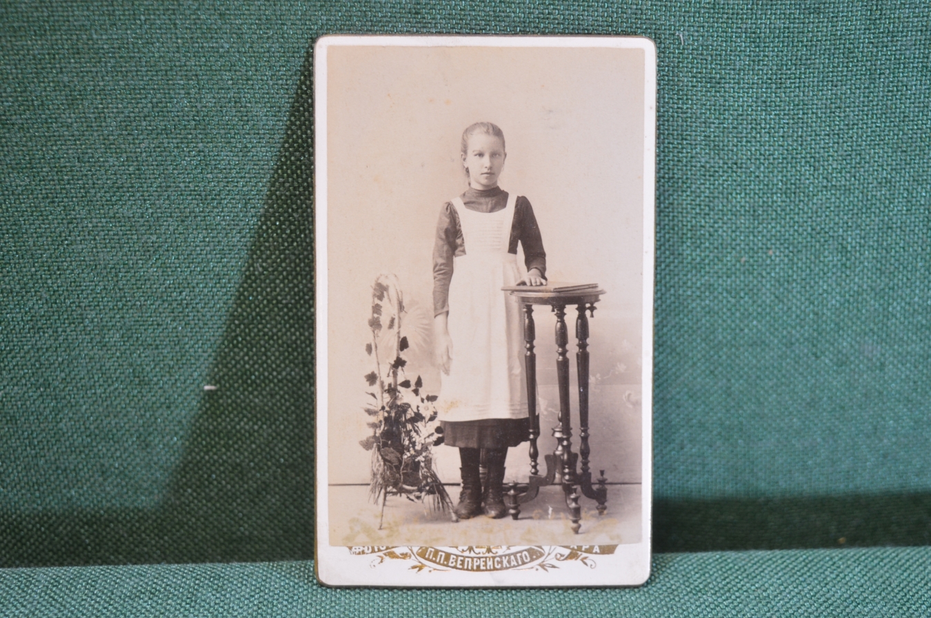Фотография старинная. Девушка гимназистка. Мода. Фото Вепрейского. Чистополь. Царская Россия. 1909 год.