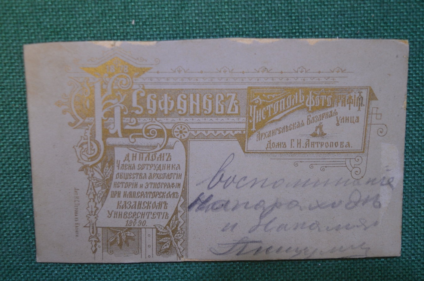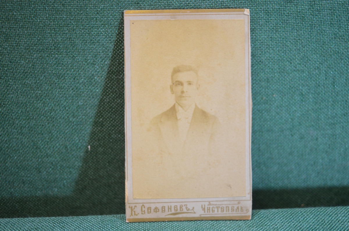 Фотография визитка старинная. Юноша. Фото Софонова. Чистополь. Царская Россия.