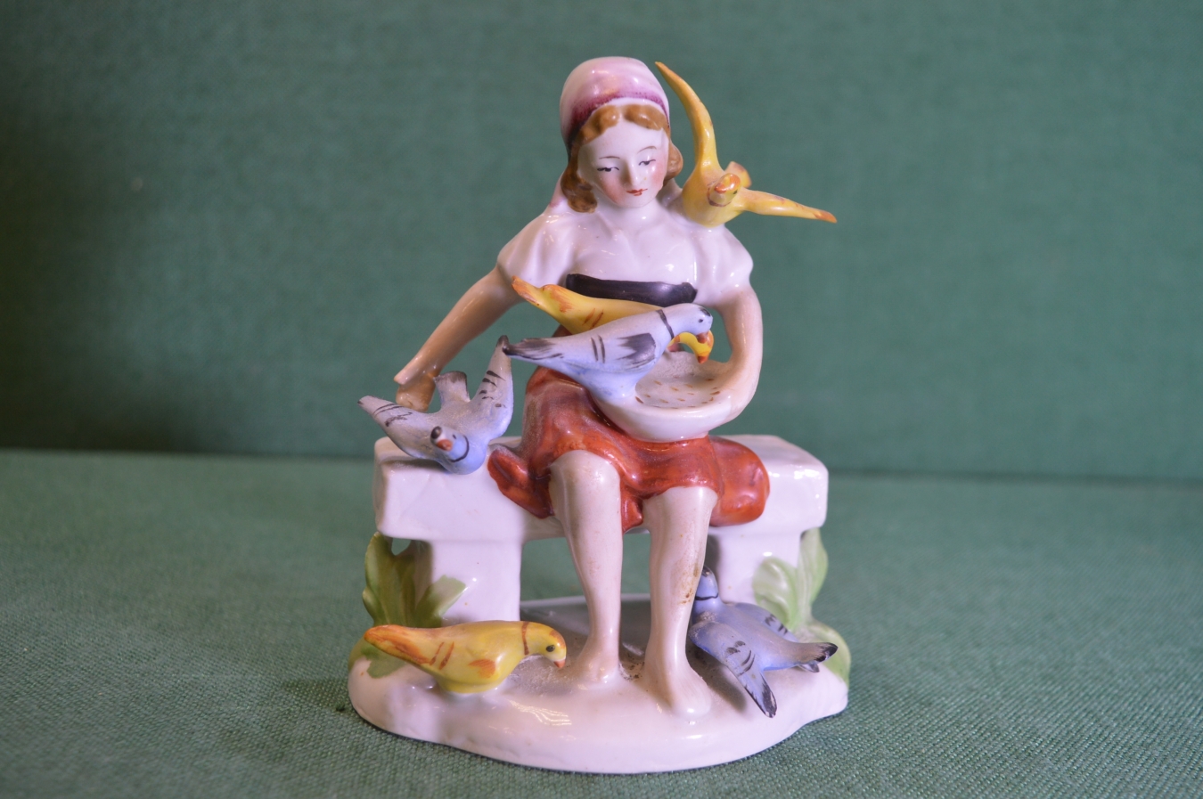 Статуэтка, фигурка фарфоровая "Девочка кормит голубей". Фарфор. Германия.