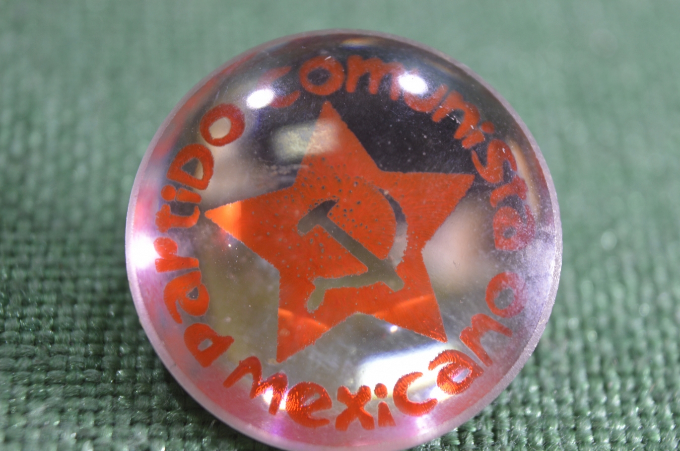 Значок "Коммунистическая партия Мексики". Patido comunista mexicano. Стекло, заколка. Мексика.