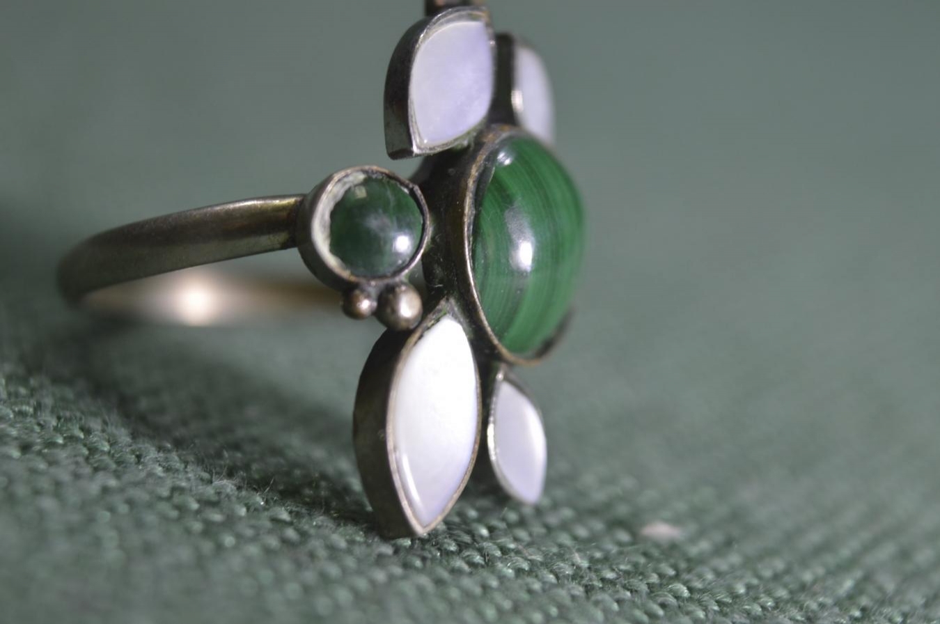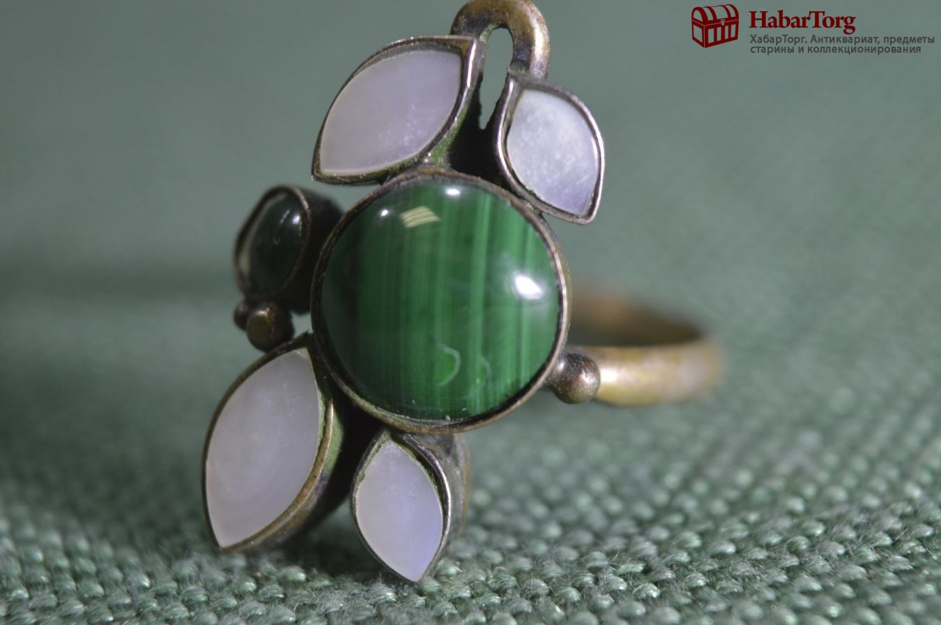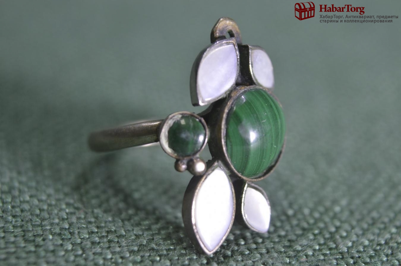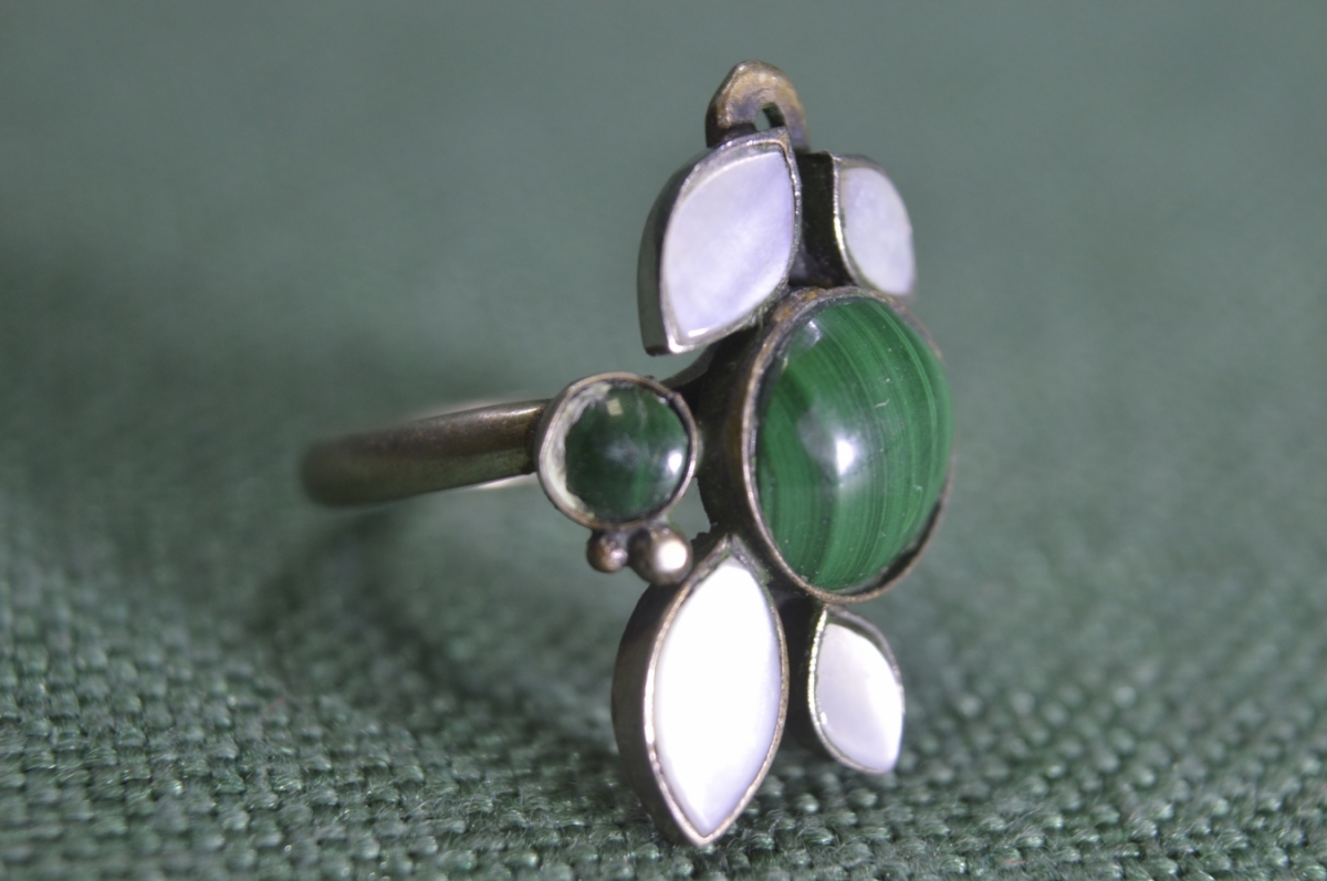 Кольцо, колечко. Перламутр, малахит. Женское украшение, бижутерия.